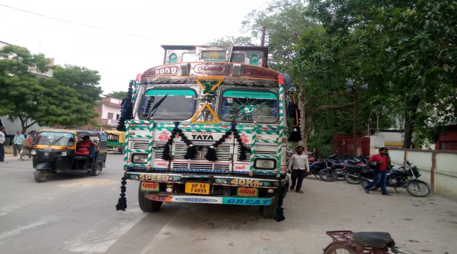 आजमगढ़। माहुल-फूलवरिया मार्ग पर गनवारा बाजार में गिट्टी बालू की दुकान के सामने खड़ी ट्रैक्टर ट्राली...