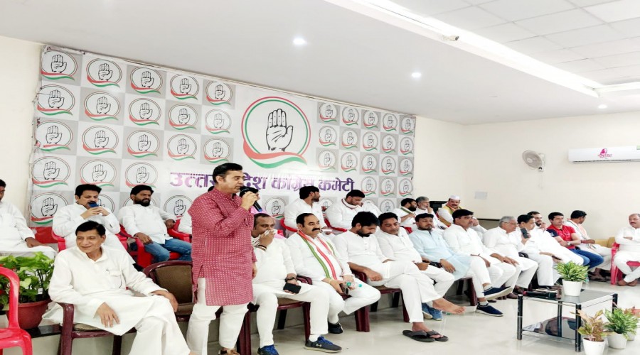 मुरादाबाद। मुरादाबाद के सर्किट हाउस में कांग्रेस प्रदेश अध्यक्ष बृजलाल खाबरी के सामने कुर्सी को ल...