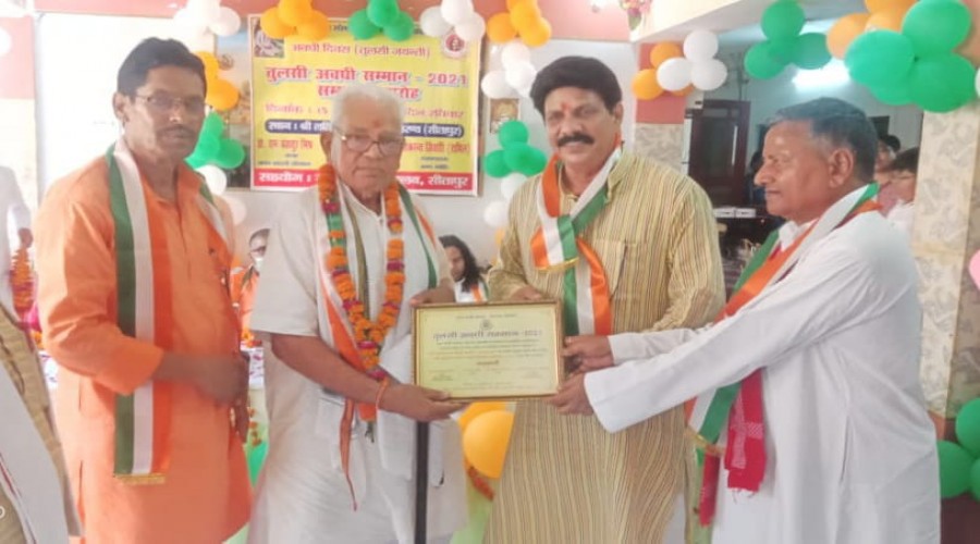 कादीपुर सुलतानपुर । अवधी मंच के अध्यक्ष लोकभूषण डॉ.आद्या प्रसाद सिंह 'प्रदीप' को नैमिषारण्य...
