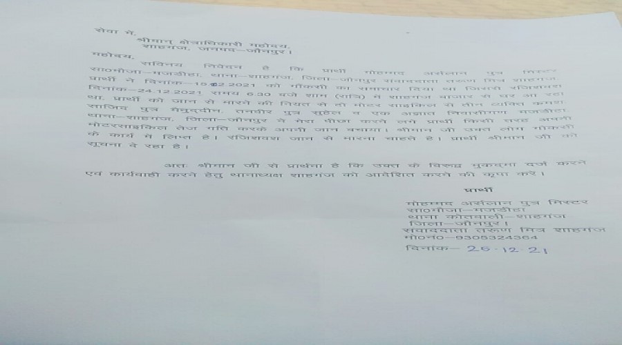 खुटहन जौनपुर : थाना के अंतर्गत मैदासपट्टी गांव मैं 29 अगस्त को हुए दो पक्षों मैं हुई मारपी...