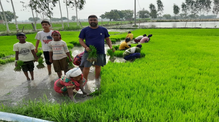 लालगंज आजमगढ़ : स्थानीय विकास खंड के अहिरौली गांव किसान मनोज सिंह द्वारा धान की नर्सरी लगाई जाती...