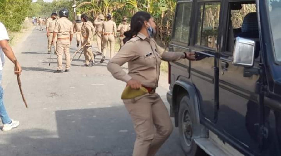 आज़मगढ़ जीयनपुर कोतवाली क्षेत्र के छपरा सुल्तानपुर गांव में रविवार को पुलिस व ग्रामीणों में हुए संघ...