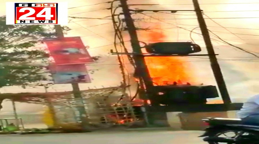 जौनपुर : जेसीज चौराहा के बैंक ऑफ बड़ौदा के सामने लगे ट्रांसफार्मर में अचानक भीषण आग लगने से अफरा...