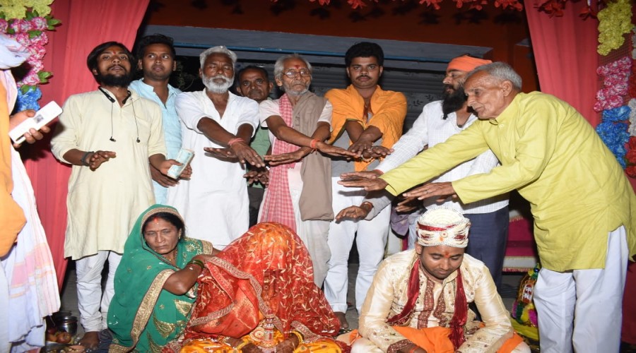 जौनपुर : विकासखंड बक्शा के मां काली जी धाम में दो जोड़ों की शादी धूमधाम से कराई गई पहला ज...