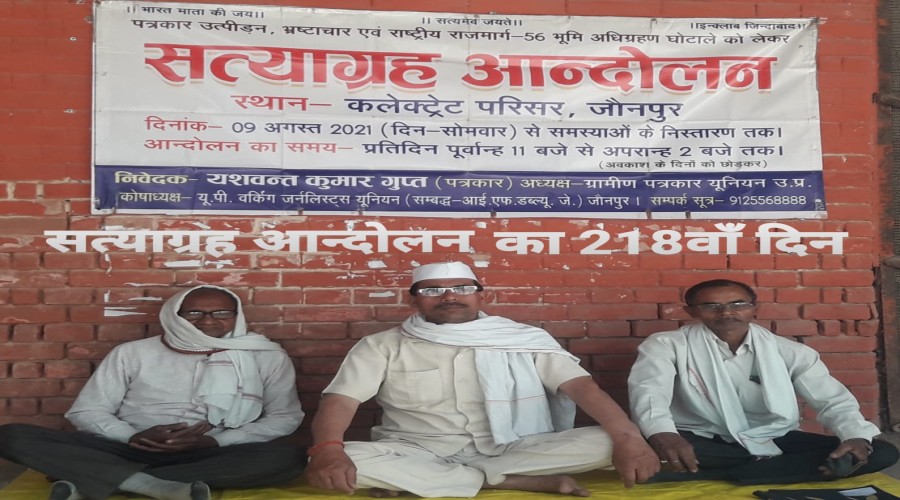 जौनपुर। सत्याग्रह आन्दोलन के 218वें दिन पत्रकार उत्पीडन, भ्रष्टाचार, जनसुनवाई पोर्टल पर फ...