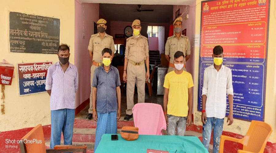 आज़मगढ़ :आज तहबरपुर पुलिस ने भिलौली हत्याकांड मे 4 वाँछित अभियुक्त को गिरफ्तार कर चालान कर दि...