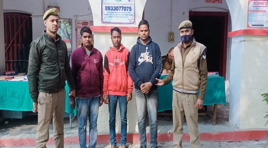 आजमगढ़ के देवगांव थाना क्षेत्र में लूट करने वाले 03 अभियुक्त अवैध असलहा व कारतूस के साथ गिरफ्तार...