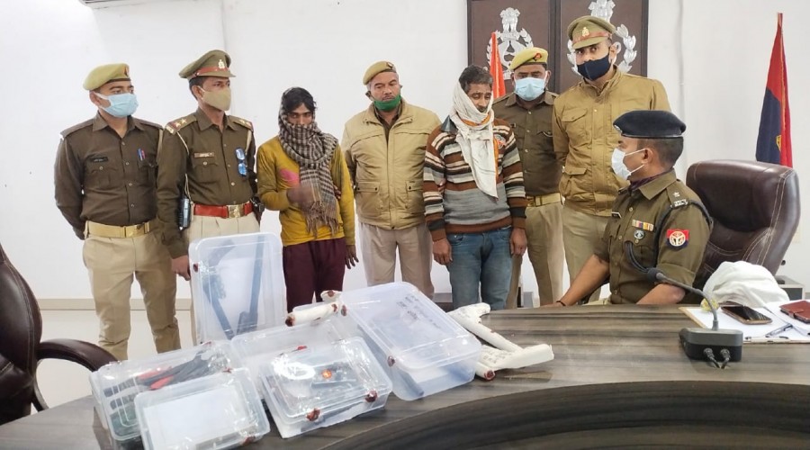 आजमगढ़ के थाना सिधारी अवैध शस्त्र फैक्ट्री चलाने वाले 02 शातिर अभियुक्त गिरफ्तार, 12 अदद देशी तम...