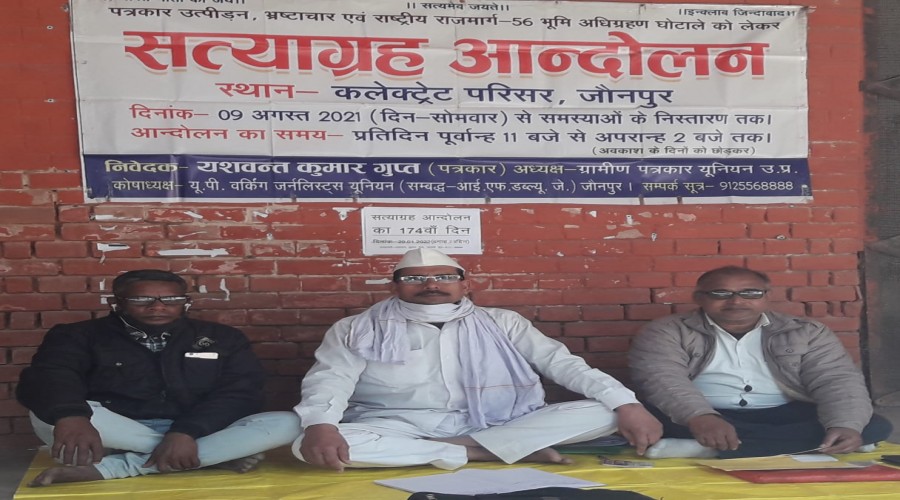 जौनपुर। सत्याग्रह आन्दोलन के 174वें दिन पत्रकार उत्पीडन, भ्रष्टाचार, जनसुनवाई पोर्ट...