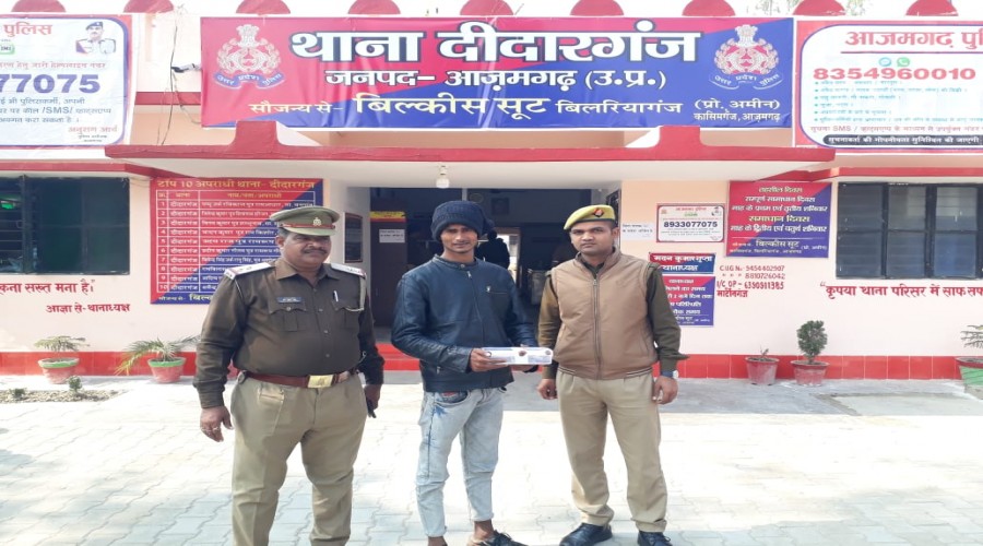 दीदारगंज - आजमगढ़ : दीदारगंज थानाध्यक्ष मदन कुमार गुप्ता व चौकी इंचार्ज मार्टिनगंज उपनिरीक्षक मनी...