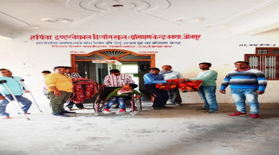 जौनपुर : दिव्यांग बच्चों को रजाईयां दान करते हुए ग्राम प्रधान के पुत्र अजीत मौर्या,आज जौनपुर के ब...