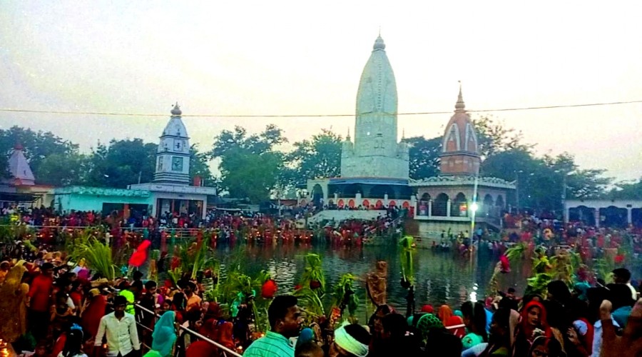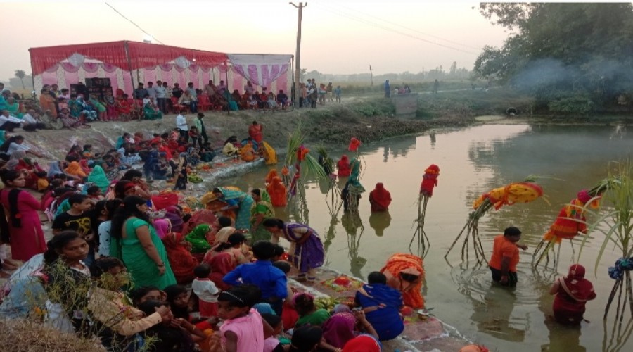 बिलरियागंज आजमगढ़ स्थानीय कस्बा बिलरियागंज के पक्के पोखरे पर दुर दराज से आई महिलाओं ने डुबते सुर...