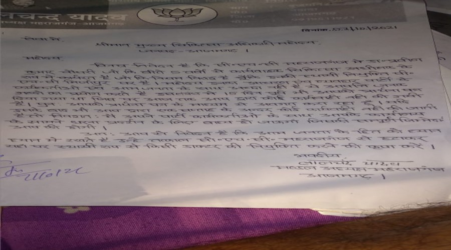 बिलरियागंज/आजमगढ़ भाजपा के मंडल अध्यक्ष लालचन्द्र ने मुख्य चिकित्साधिकारी जनपद आज़मगढ़ को लिखित श...