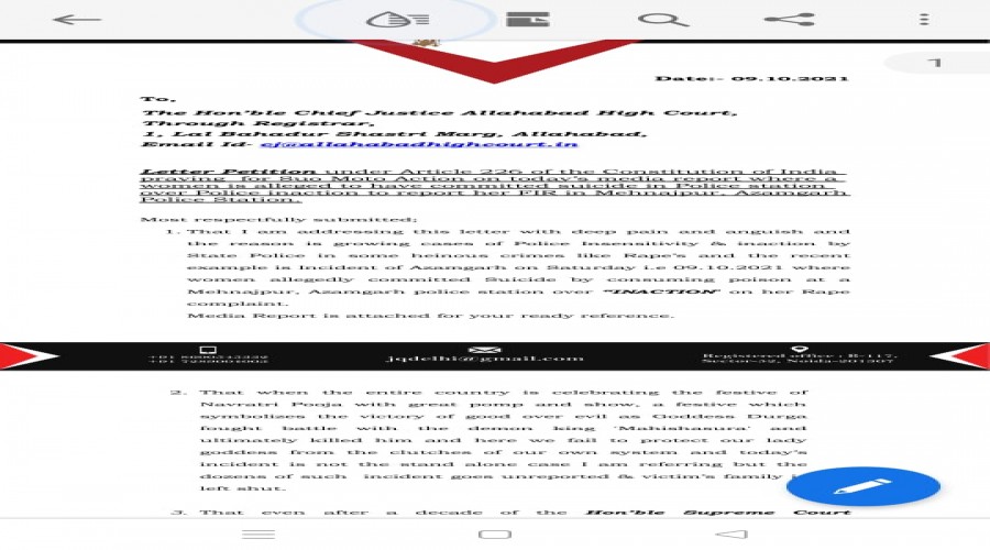 आजमगढ़ के मेहनाजपुर का मामला रेप पीड़िता ने अपनीFIR दर्ज करवाने के लिए तीन दिन तक मेहनाजपुर थाने...