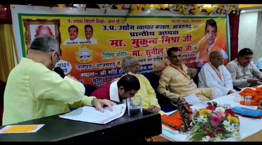 आजमगढ़ उत्तर प्रदेश उद्योग व्यापार मंडल के प्रांतीय अध्यक्ष मुकुंद मिश्रा का जनपद प्रथम आगमन पर नग...