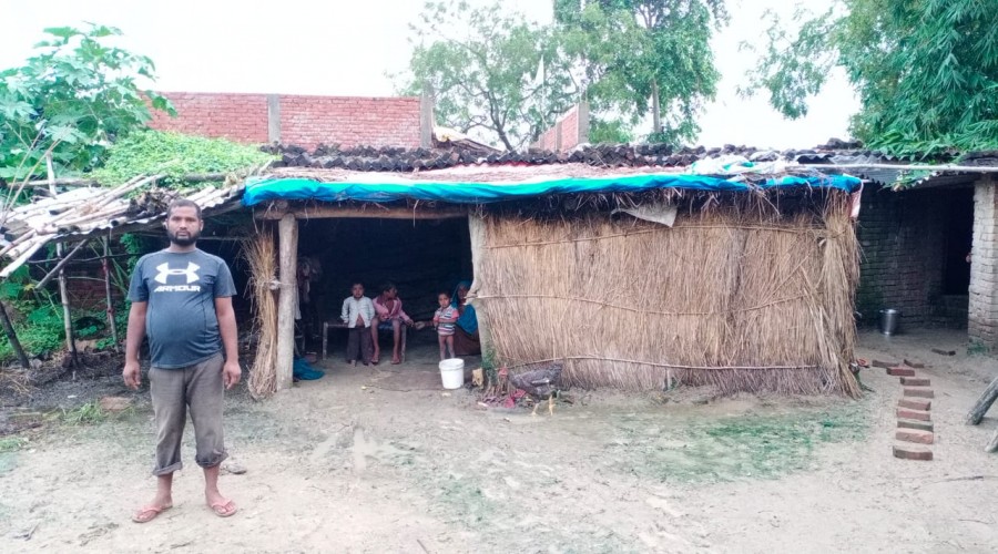 अतरौलिया। गरीबों के आवास के नाम पर हो रही धोखाधड़ी, बारिश के मौसम में पाँच छोटे बच्चों संग गुजर क...