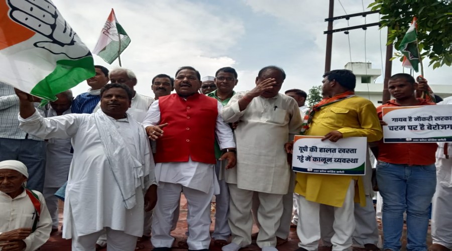आज़मगढ़ निजामाबाद : बेरोजगारी, महंगाई तथा कृषि कानूनों सहित अन्य मामलों को लेकर कांग्रेस कार्यकर्त...