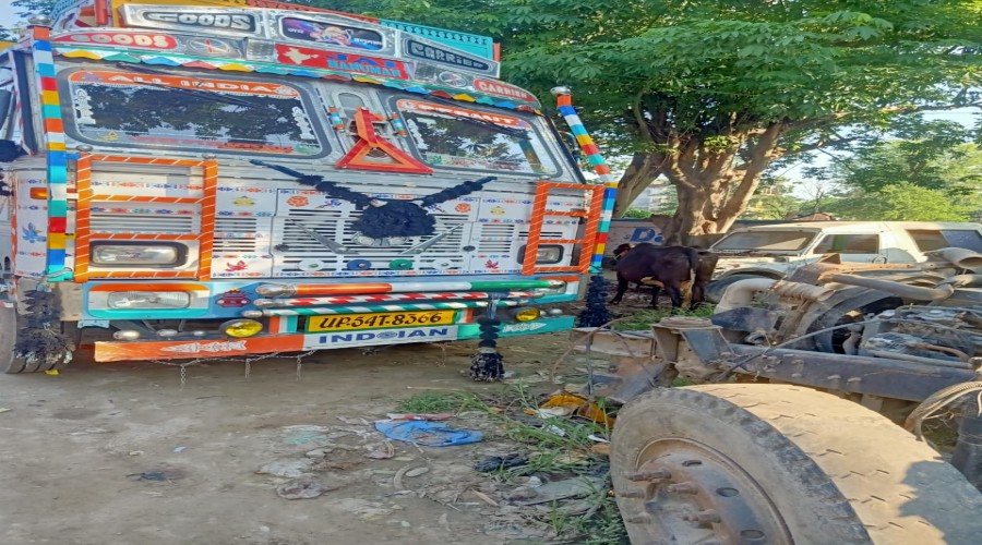आजमगढ़ के बिलरियागंज थाना क्षेत्र के खजियाबर न्याय पंचायत पर ट्रक पर लदी 19 राशि गाय व दो राशि बछ...