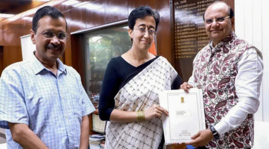नई दिल्ली। दिल्ली की नई मुख्यमंत्री आतिशी (Atishi) ने अपनी कुर्सी के बगल में एक खाली कुर्...