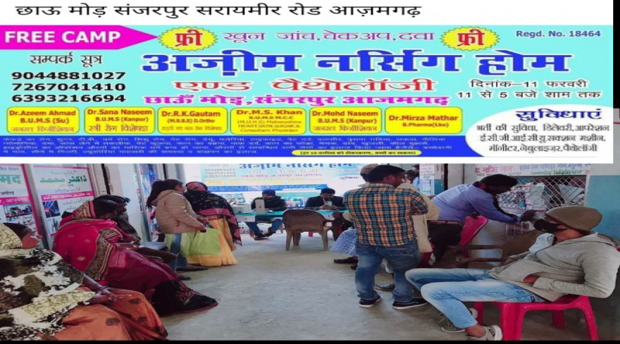 निज़ामाबाद आज़मगढ़ : स्थानीय तहसील अन्तर्ग संजरपुर बाजार के छाऊँ मोड़ पर स्थित अज़ीम नर्सिंग होम के तत...
