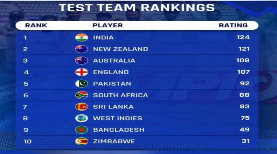 मुम्बई में न्यूजीलैंड के खिलाफ भारत की रिकॉर्ड 372 रन से जीत के बाद,आईसीसी ने ताजा टेस्ट की रैकिं...