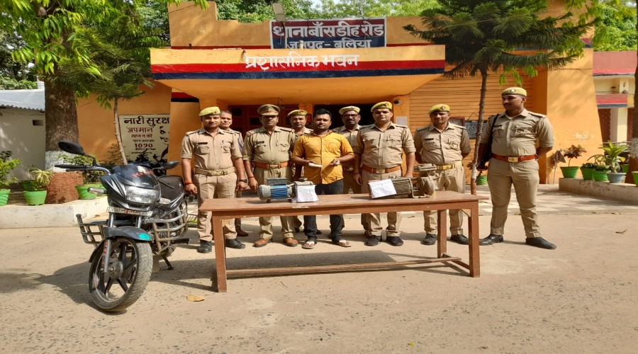 पूर्वांचल रिपोर्ट :- जनपद बलिया के थाना बांसडीह में चोरी की बिजली,मोटर कट्टा कारतुस के साथ एक युव...