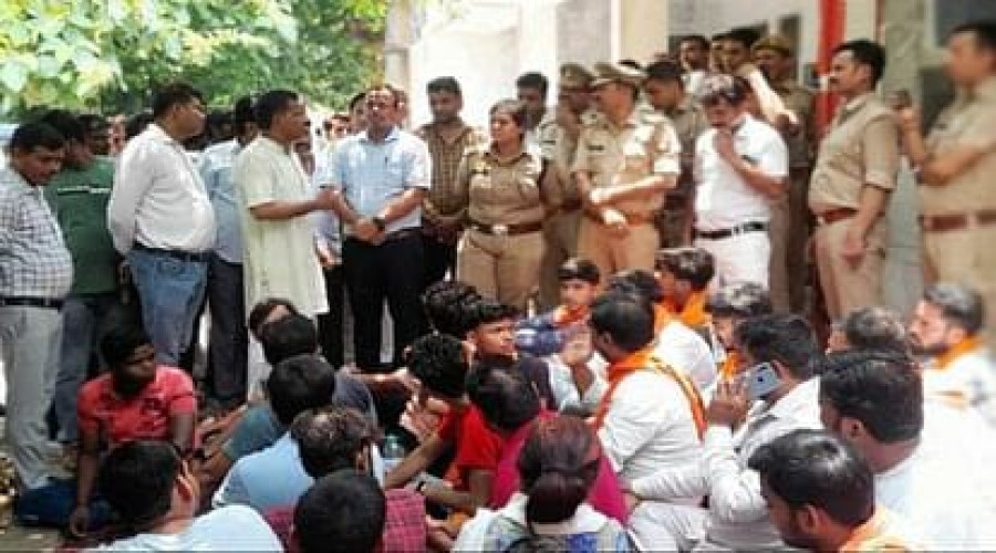 बरेली। बरेली के अलीगंज में ताजिया पर नई परंपरा डालने की शिकायत करने पहुंचे हिंदू संगठन के लोगों स...