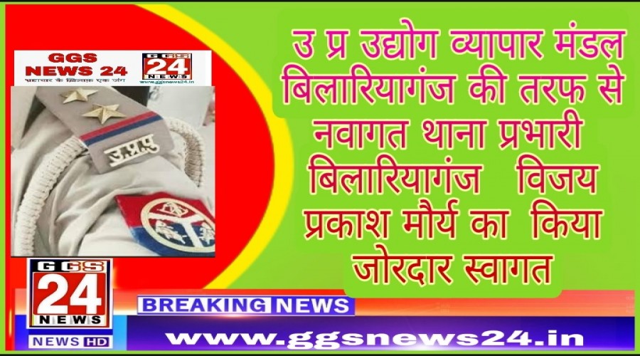 बिलारियागंज। उ प्र उद्योग व्यापार मंडल बिलारियागंज की तरफ से नवागत थाना प्रभारी बिलारियाग...