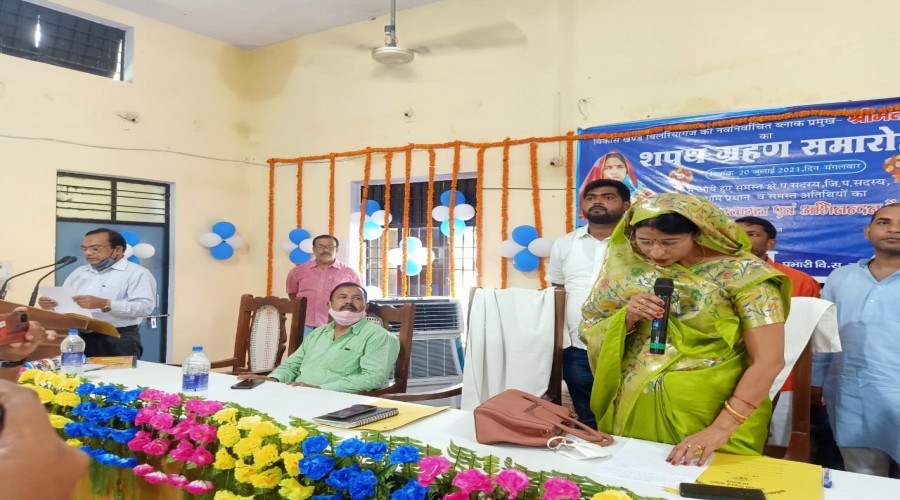 आजमगढ़ के बिलरियागंज व्लाक प्रमुख का शपथ ग्रहण उर्मिला यादव पत्नी रमेश यादव के साथ एक सौ छब्बीस...
