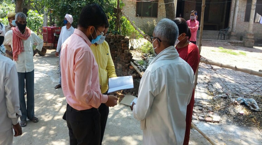 आजमगढ़ के बिलरियागंज थाना क्षेत्र के इस्माईलपुर गोरिया गांव के सिवान में कोरोना से बचने के लिए मा...