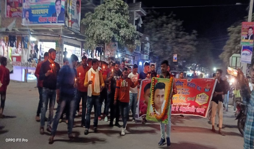 बिलरियागंज/आजमगढ़ विश्व हिन्दू परिषद के पदाधिकारियों ने रिंकु शर्मा की हत्या के विरोध में आज श्रद...