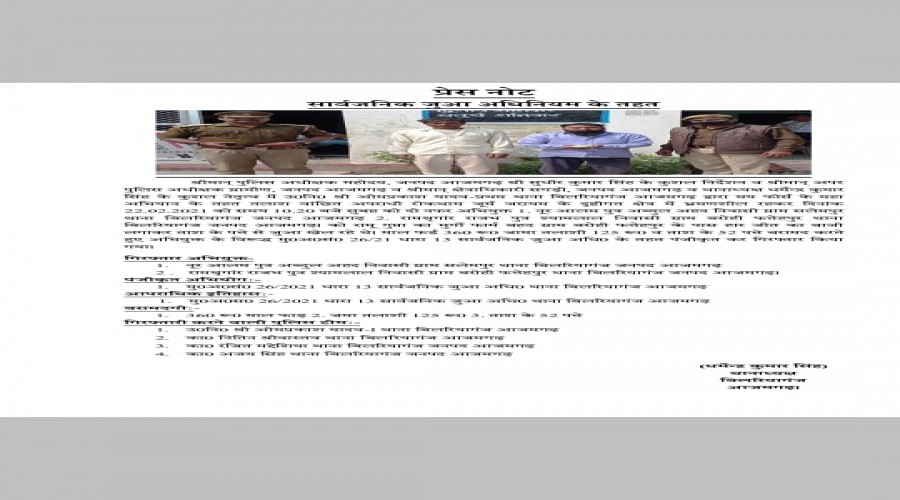 बिलरियागंज/आजमगढ़ स्थानीय थाना बिलरियागंज के ग्राम सलेमपुर निवासी नुर आलम पुत्र अब्दुल अहद सलेमपु...