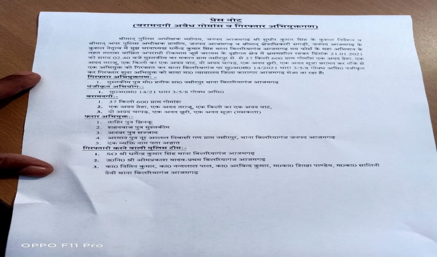 बिलरियागंज/आजमगढ़ पुलिस अधीक्षक जनपद आजमगढ़ सुधीर कुमार सिंह के कुशल निर्देशन व अपर पुलिस अधीक्षक...