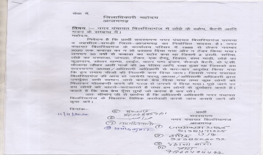 बिलरियागंज/आजमगढ़ स्थानीय नगर पंचायत बिलरियागंज में विगत वर्ष सन उन्नीस सौ अठ्ठासी से नंबर दो हज...