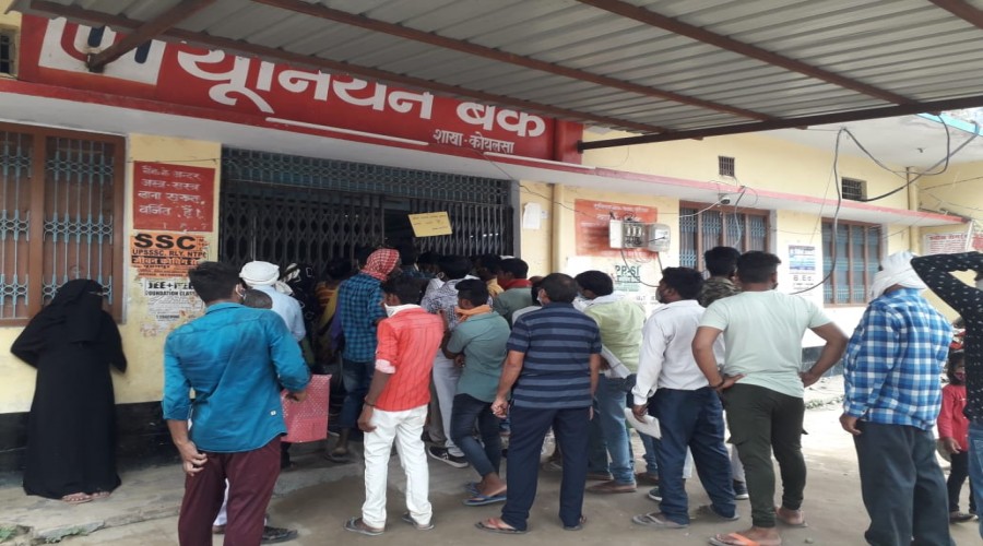 बुढ़नपुर विकासखंड कोयलसा की यूबीआई शाखा पर लोगों द्वारा सोशल डिसीजन का पालन नहीं किया जा रहा है व...