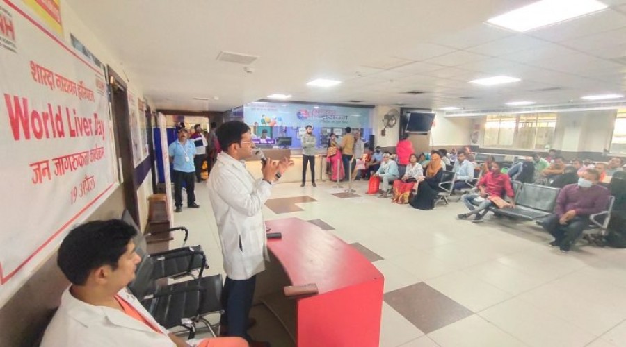 मऊ वर्ल्ड लीवर ड़े, के अवसर पर शारदा नारायण हास्पीटल मे जन जागरुकता गोष्ठी का आयोजन किया ग...