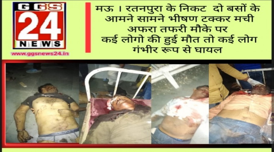 मऊ । रतनपुरा के निकट दो बसों के आमने सामने भीषण टक्कर मची अफरा तफरी मौके पर कई लोगो की हुई...