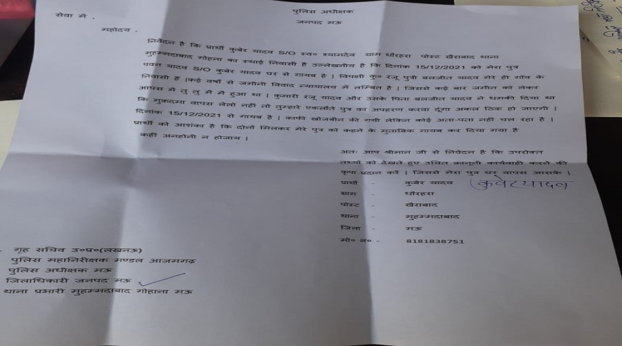 वलीदपुर मऊ : मोहम्मदाबाद गोहना थाना अंतर्गत ग्राम ग्राम धौराहरा पोस्ट खैराबाद के रहने वाले कुबेर...