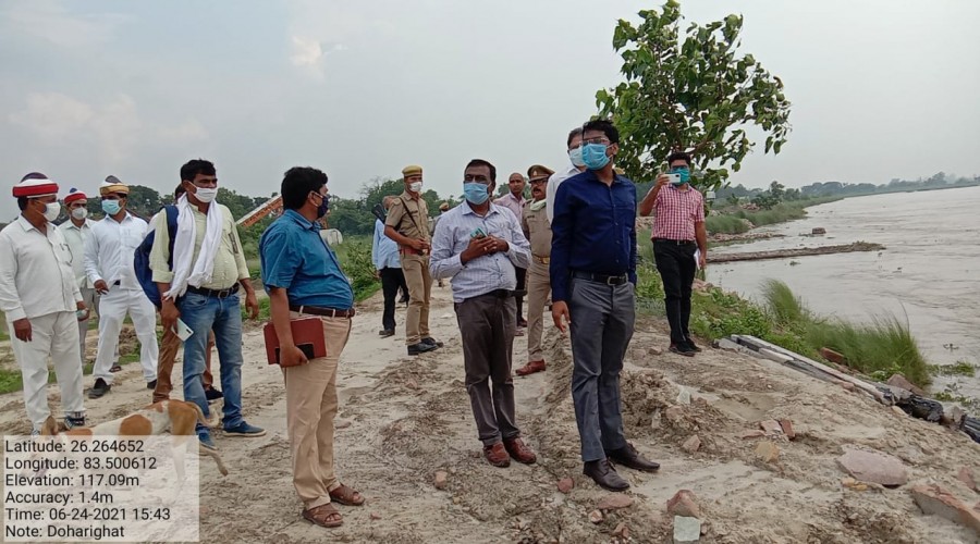 दोहरीघाट मऊ - नेपाल द्वारा छोड़े गए डेढ़ लाख क्यूसेक पानी छोड़ने व पिछले एक हफ्ते से हो रही लगात...