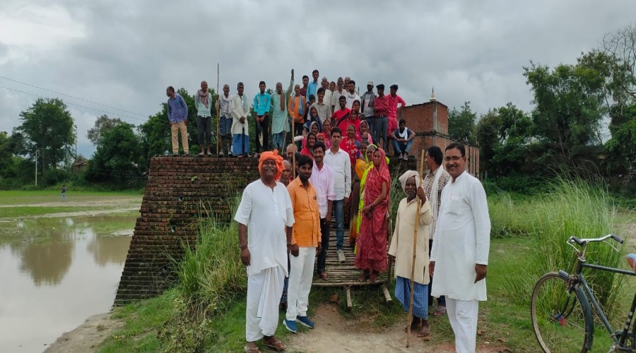 महराजगंज आजमगढ़ - चिकनहवां पर इस बार भी नहीं बन पाया अर्धनिर्मित पुल, सरजू नदी अपना रौद्र रू...