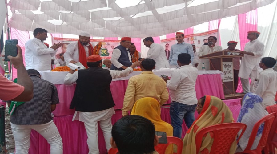 मार्टीनगंज आजमगढ़ : बुधवार को मार्टिनगंज बाजार में समाजवादी पार्टी के कार्यालय के सामने आयोजित जिल...