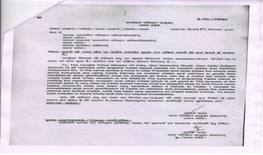लखनऊ:- लखनऊ से बड़ी खबर,अगर आपने अपनी Bike या कार पर अपनी जाति लिखी, तो आपका वाहन जब्त हो ज...
