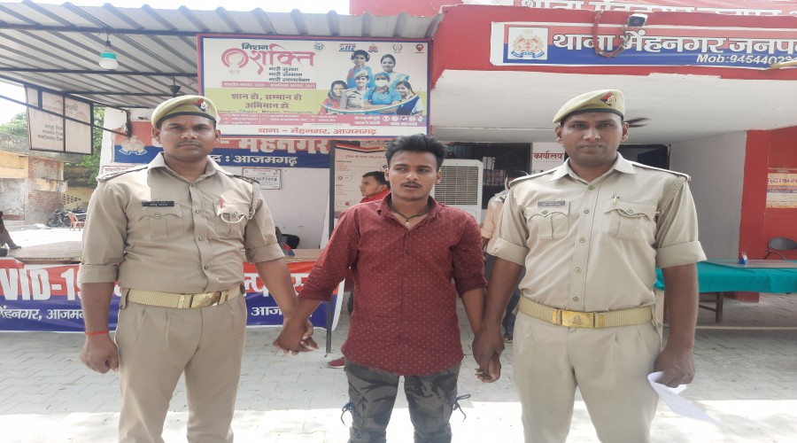 आजमगढ़ मेहनगर : आज दिनांक 30.04.2022 को थानाध्यक्ष बसन्त लाल मय हमराह का0 पवन यादव, का0 अभिषेक कुम...