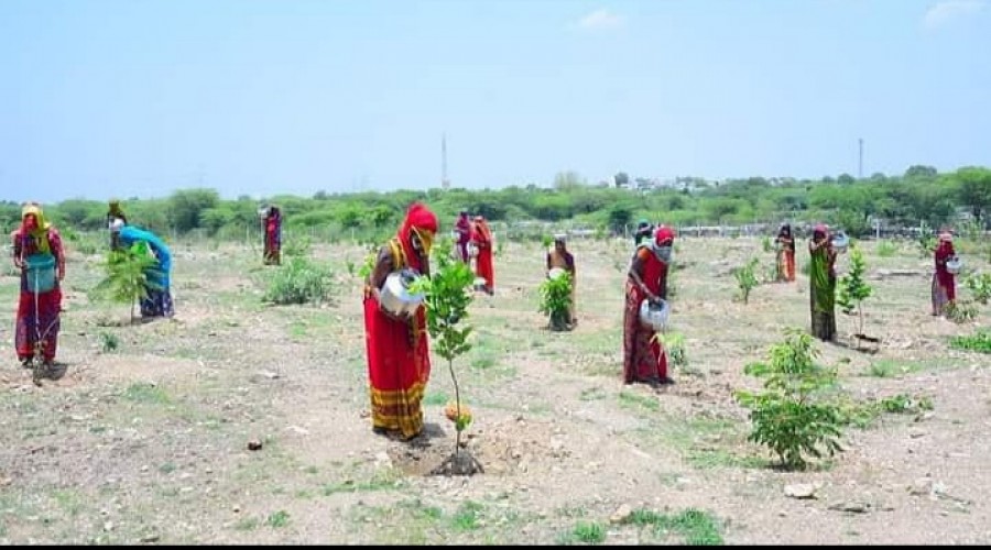 राजस्थान : राजसमंद जिले के समीप नोगामा भील बस्ती की आदिवासी भील महिला समूह ने चरागाह भूमि में 150...