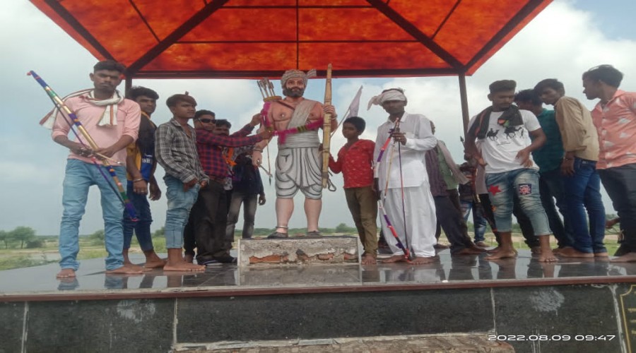 राजस्थान, राजसमंद विश्व आदिवासी दिवस पर मुराडा चौराहे पर राणा पूंजा भील को माला पहनाई गई। आ...