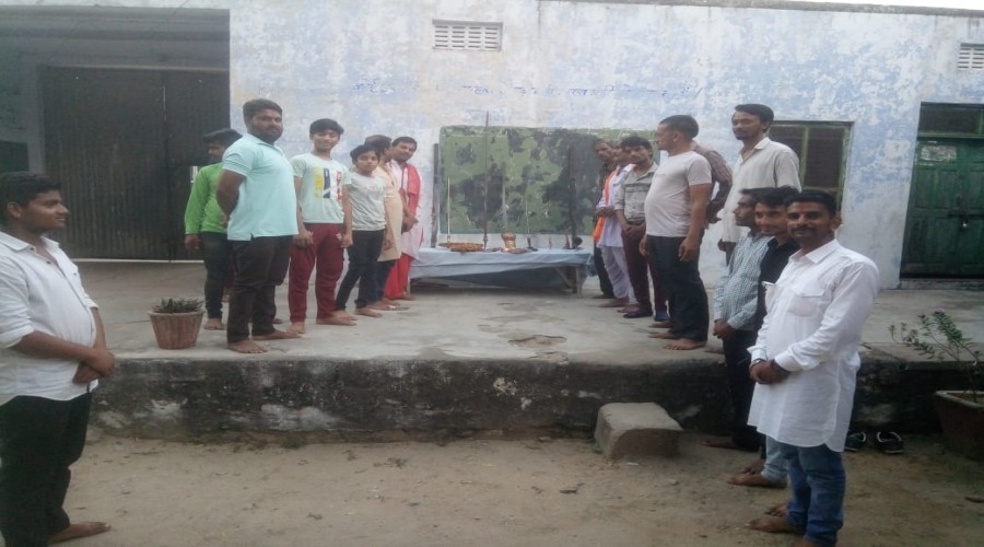 राजस्थान : विशव हिन्दू परिषद् बजरंग दल ने फूलिया कला मे शस्त्र पूजन किया कार्यक्रम का शुभारं...