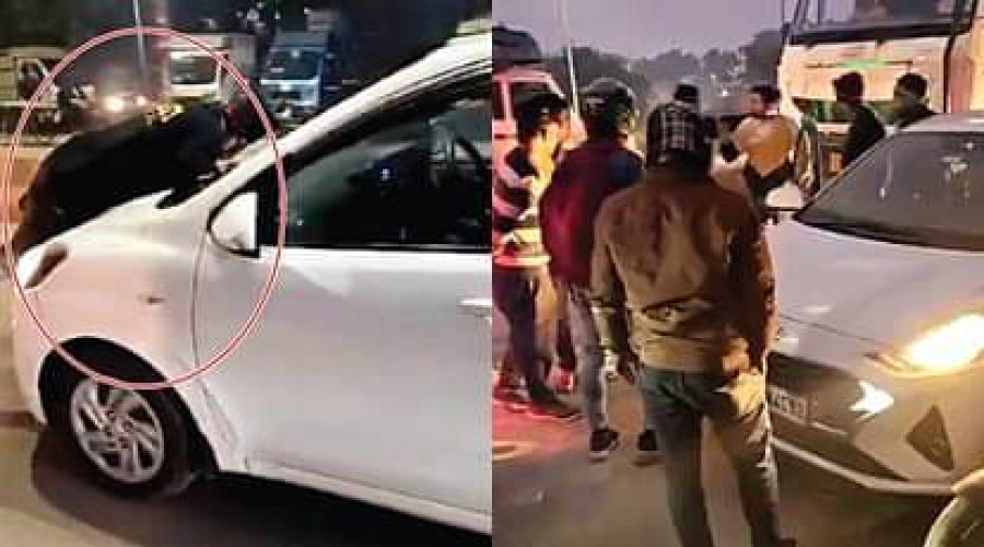 मुरादाबाद। कटघर थानाक्षेत्र में कार के अंदर पत्नी को देखकर युवक कार रुकवाने के लिए बोनट प...