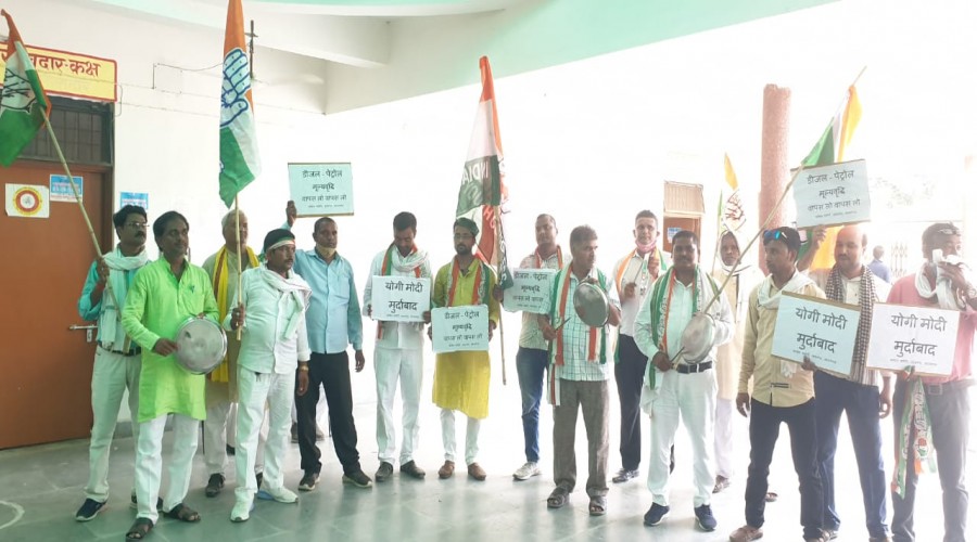 लालगंज (आज़मगढ़) लालगंज में बुधवार को कांग्रेस के ब्लाक अध्यक्ष अहेमर वकार के नेतृत्व में बढ़ती म...