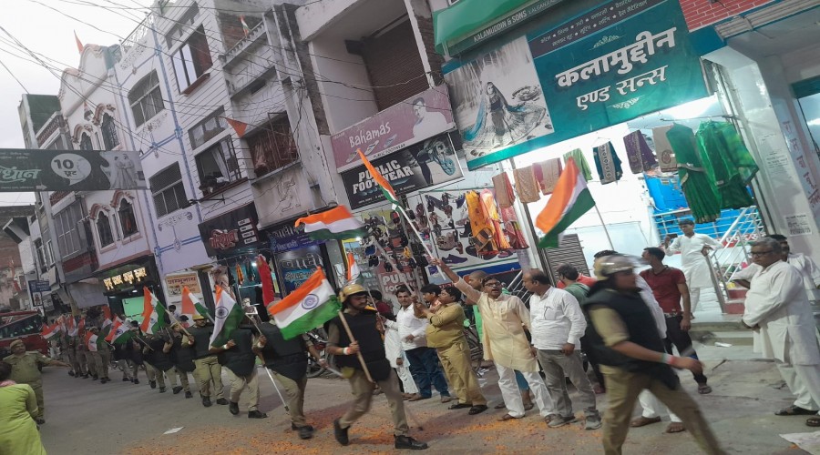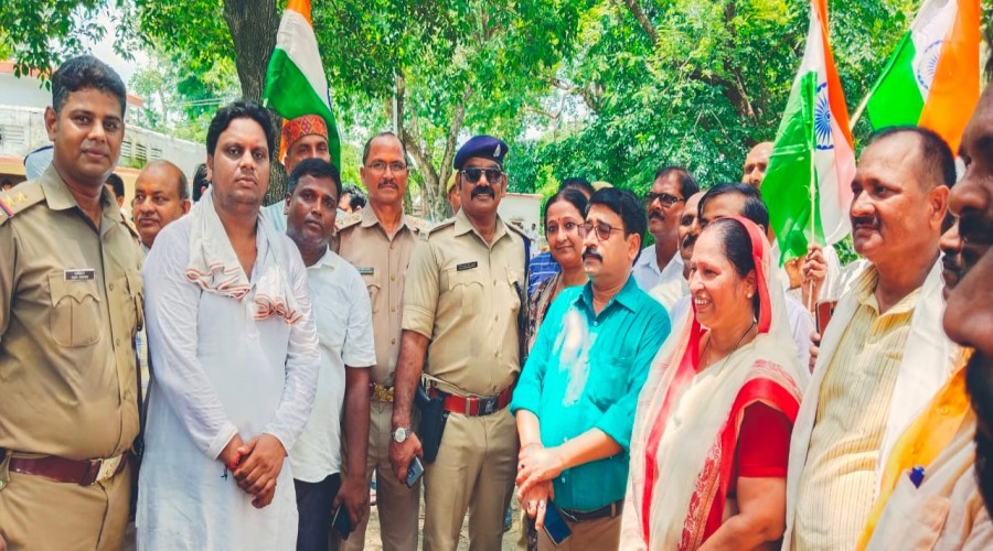 लालगंज आजमगढ़ दिन शुक्रवार को लालगंज तिरंगा पदयात्रा उपजिलाधिकारी सुरेंद्र नारायण त्रिपाठी व क्षे...