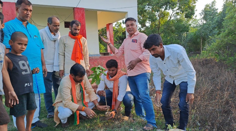 लालगंज आजमगढ़ : राष्ट्रीय स्वयंसेवक संघ द्वारा मोनी बाबा आदर्श विद्यालय मसीरपुर के प्रांगण में वन...
